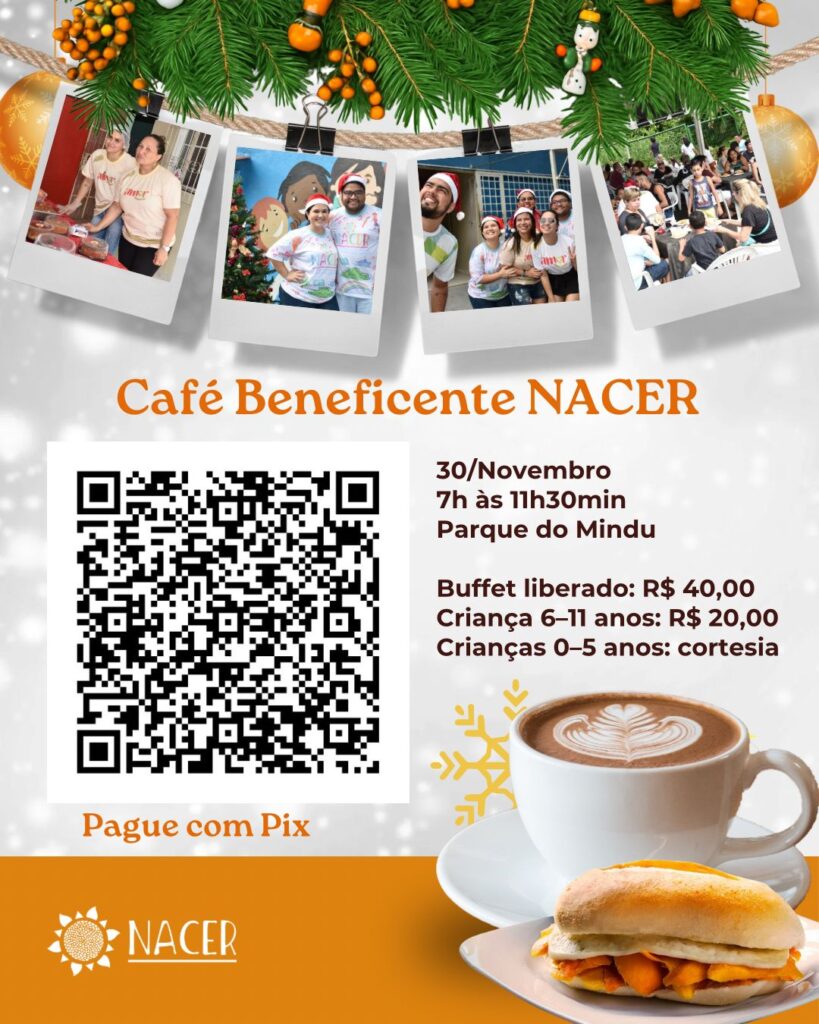 O Núcleo de Assistência à Criança e à Família em Situação de Risco (NACER) promoverá um café da manhã beneficente para arrecadar recursos destinados à manutenção de seus projetos sociais, no dia 30 de novembro (domingo), das 7h às 11h30, no Parque do Mindu, situado na Rua Domingos José Martins, s/n, bairro Parque Dez de Novembro — Zona Sul de Manaus (AM).