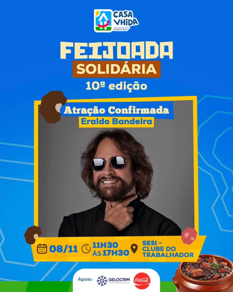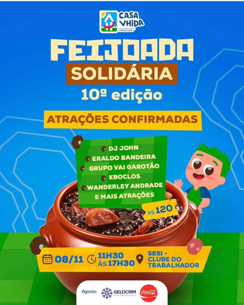 ‘Feijoada Solidária’ em comemoração aos 25 anos da instituição em Manaus. O evento vai ocorre, no dia 8 de novembro de 2025, no Sesi Clube do Trabalhador, das 11h30 às 17h30.