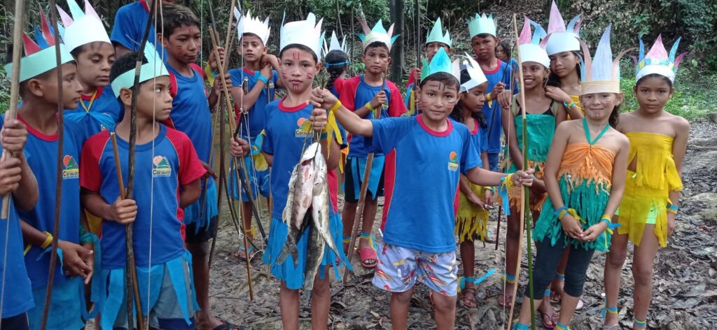 O professor também criou, junto a outras duas educadoras, o GDA “Cântico da Floresta”, inspirada na lenda do uirapuru, pássaro típico da Amazônia. As atividades incluíram vivências culturais ligadas ao povo Kokama, como competições de arco e flecha e o preparo coletivo de alimentos tradicionais, como peixe assado e cará cozido.