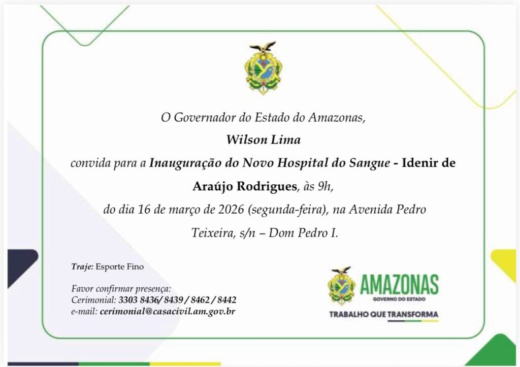 A inauguração terá a presença do Governador do Amazonas , Wilson Lima, e a diretora do Hemoam Dra. Socorro Sampaio e a presidente do Grupo Raio de Sol Éricka Garcia Rodrigues.