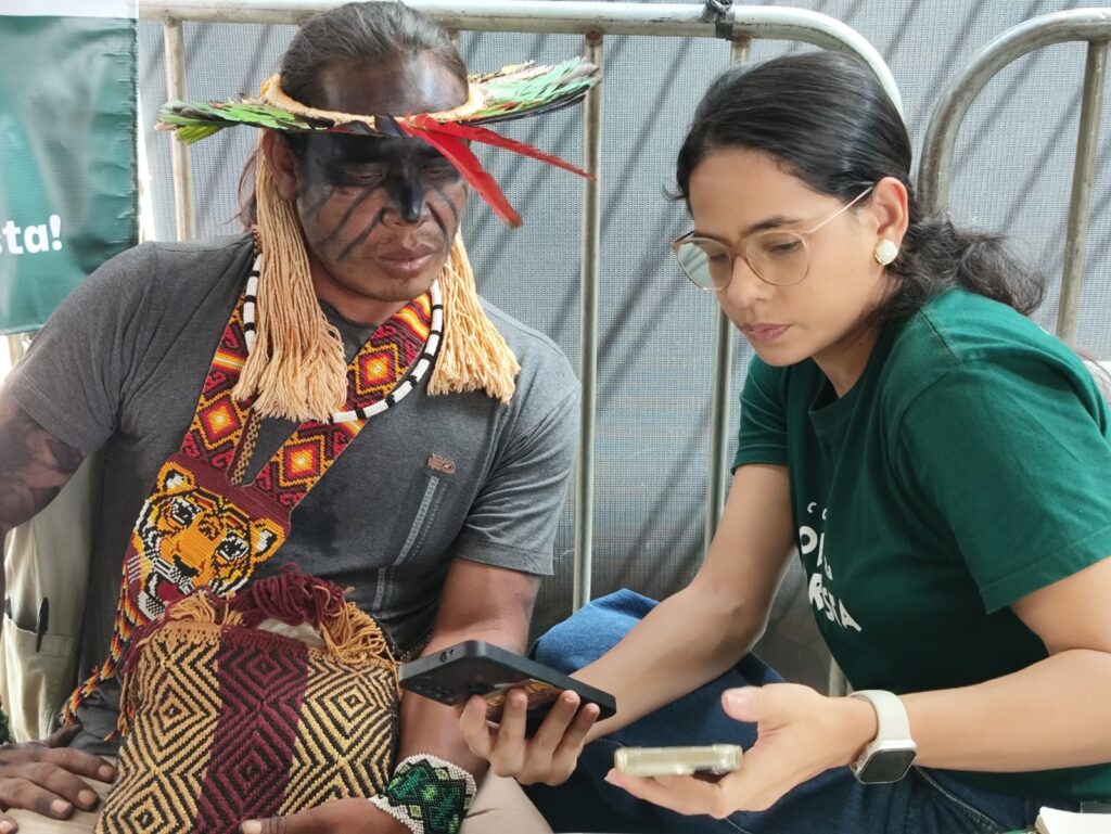 A conectividade também foi apresentada como ferramenta essencial para a defesa dos territórios. Amanda Ávila, da Gerência de Monitoramento Territorial Indígena (GEMTI/COIAB), destacou a importância do mapeamento e articulação de iniciativas locais. “Trouxemos ao ATL o cadastramento dos grupos de monitoramento nas Terras Indígenas da Amazônia. A conectividade permite comunicação com órgãos, advogados e organizações, enviando alertas e garantindo respostas mais rápidas para a proteção territorial”, afirmou.